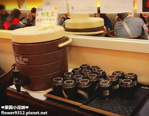 有無限供應的溫麥茶,放在餐廳位置的中間,大家可以自行去取用~