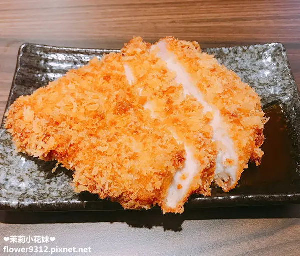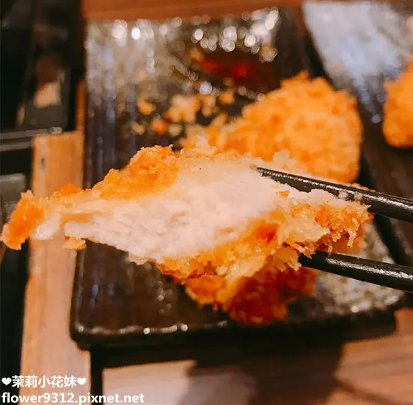 這是使用豬的腰內肉,外面再裹上金黃色麵衣,整個看起超可口的~