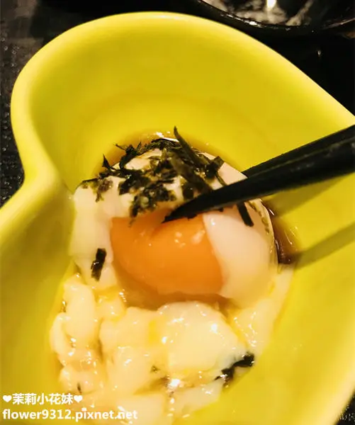 這個日式醬汁,有帶一些鹹甜感,這月見溫泉蛋完全沒有蛋腥味~