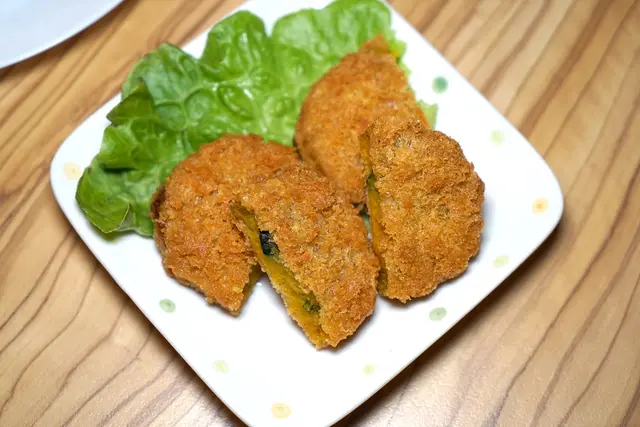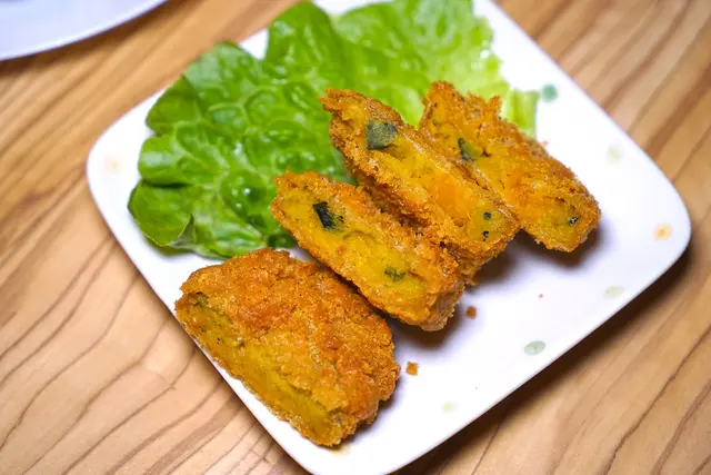 南瓜風味的可樂餅吃得到新鮮的南瓜丁、綿密而不油膩