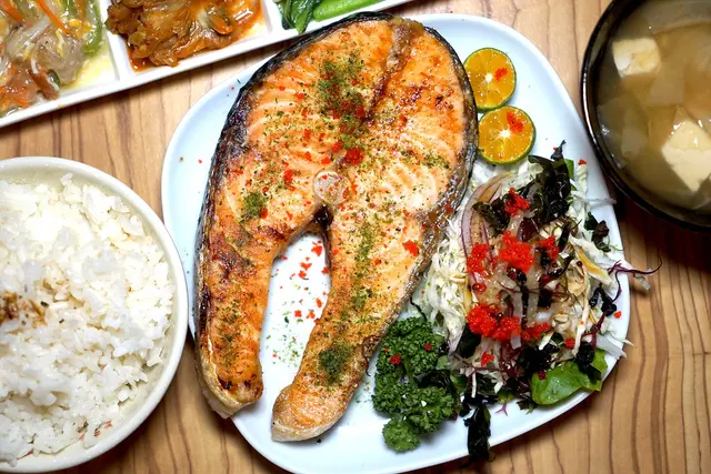 日式料理中少不了的烤魚、晴天廚房推出的厚片烤鮭魚定食