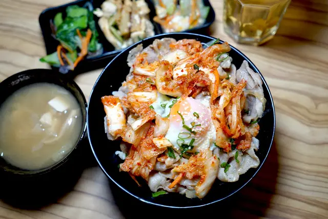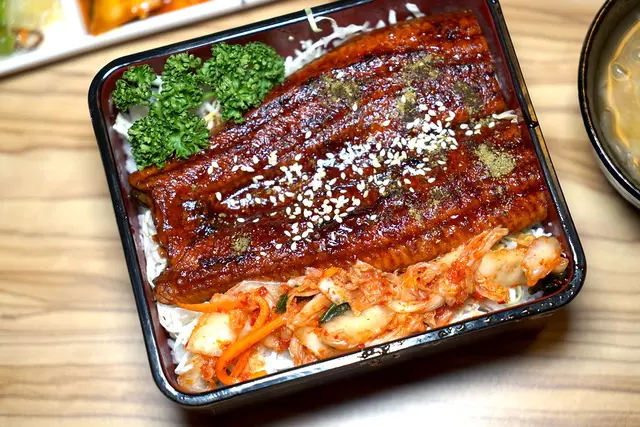 滿滿的照燒風味鰻魚搭配辣味泡菜(韓式)