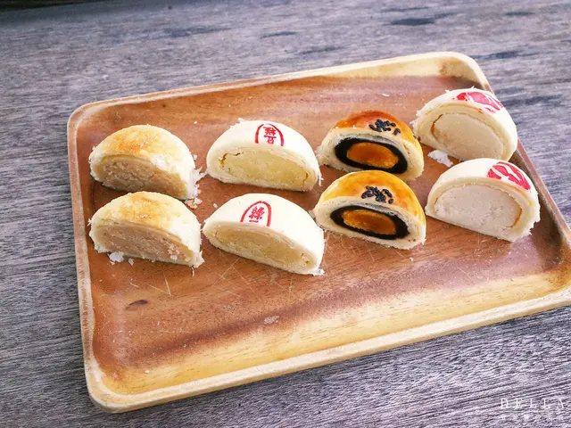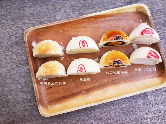 帕瑪森起司酥餅、藍絲可烏豆沙蛋黃酥、得獎百年白豆沙餅、綠豆椪