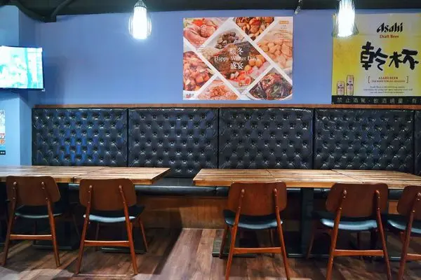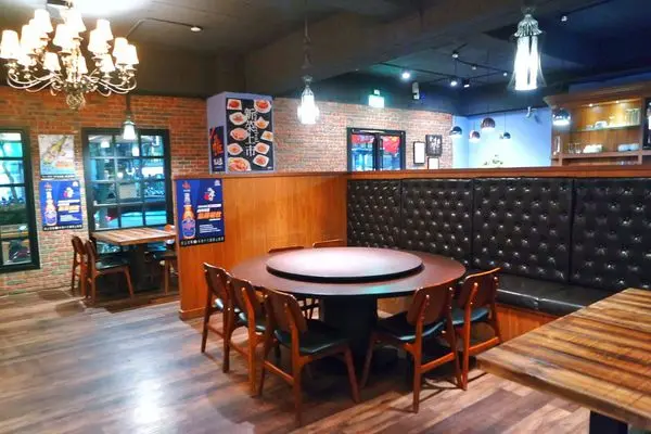 搭配復古風長椅,垂掛多盞華麗水晶燈,佈置的時尚雅致且空間寬敞。
