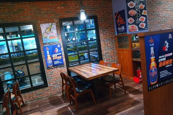 ▲一入內就看到有點沉穩的英式吧檯擺滿許多酒支,轉身往裡走去,整體以深淺溫潤木質與紅磚瓦溫暖色系互相呼應,