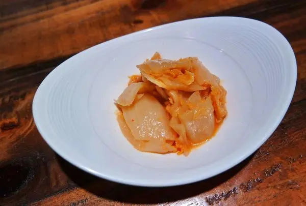 口感溫和不辣口也沒有嗆辣的蒜味,泡菜酸甜可口爽脆多汁相當開胃。