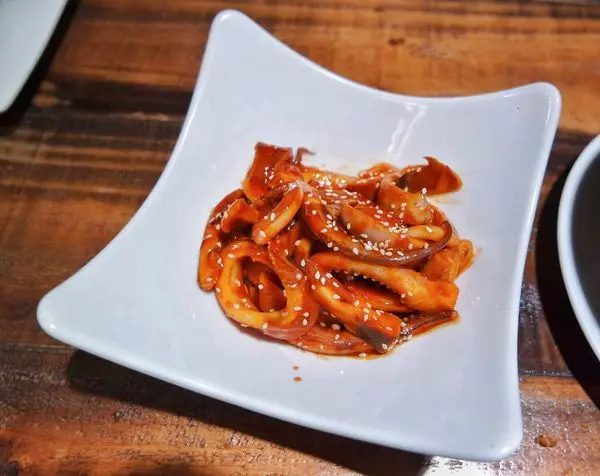 酒食坊使用韓國辣椒醬提香,冰卷爽脆Q彈外加甜甜辣辣與芝麻的香度,讓人一口接著一口停不下來。