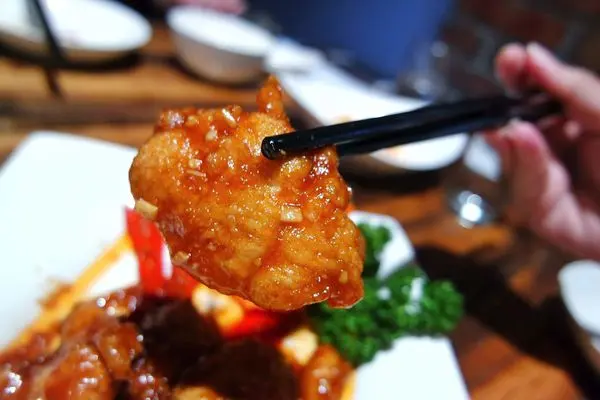 燙口的雞肉咬下還流出鮮美的雞汁,外皮微酥內裡軟嫩皆已去骨,糖醋酸甜的醬汁鹹中帶微微辣感,配上一口熱呼呼的白飯十足過癮。