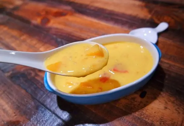 西米露、芒果果肉與柚子果肉味濃香甜,也正因為夏季才能吃到這麼甜的當季芒果,金黃色閃耀的寶石光芒,冰涼的幸福感爆棚。
