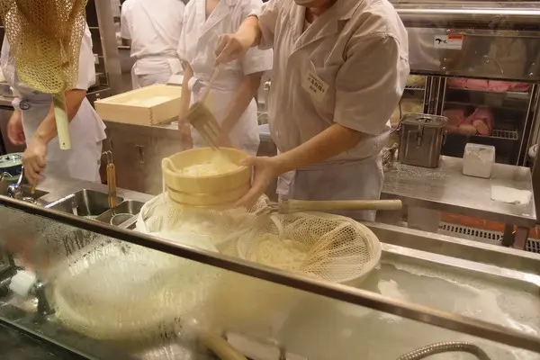 麵煮好會有大網子撈,若有人點釜揚烏龍麵,就會再用爪子弄一些起來…