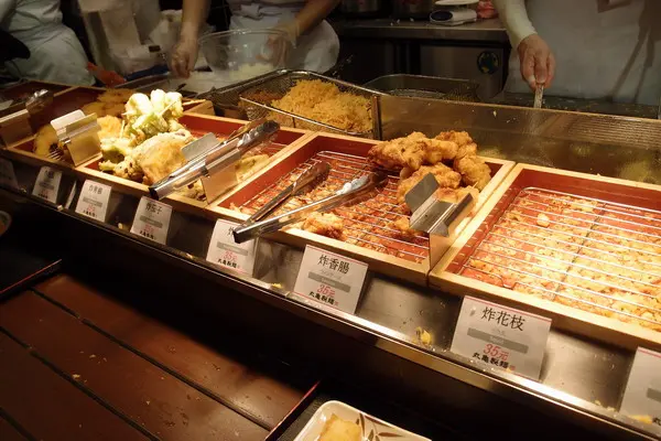 檯上沒有的話,可以先和服務人員說一下你要什麼,然後往前移動,以免阻礙排隊隊伍,然後店員炸好後會補給你~