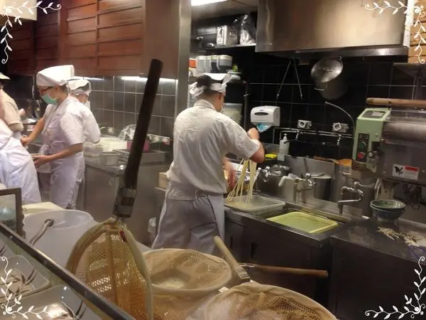 半開放式的廚房裡,可以看到師傅現做的烏龍麵,然後現煮麵、現撈麵、過冷水、再稱重