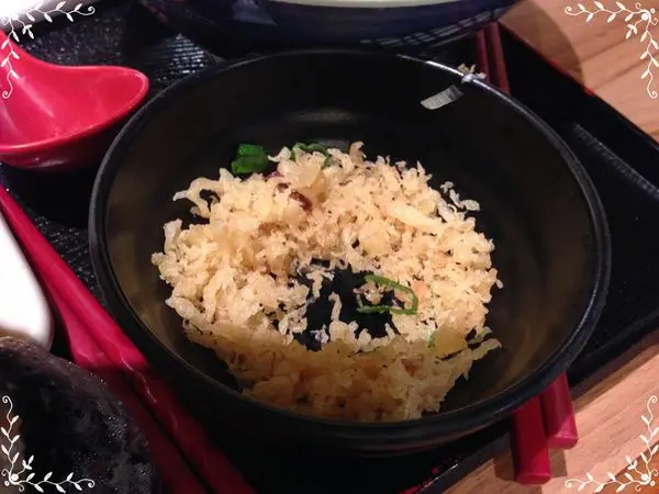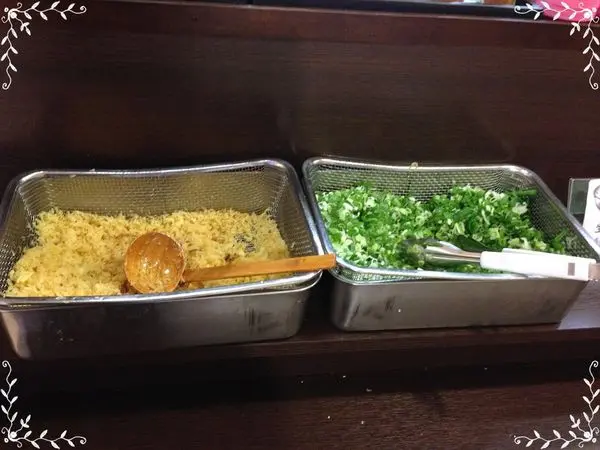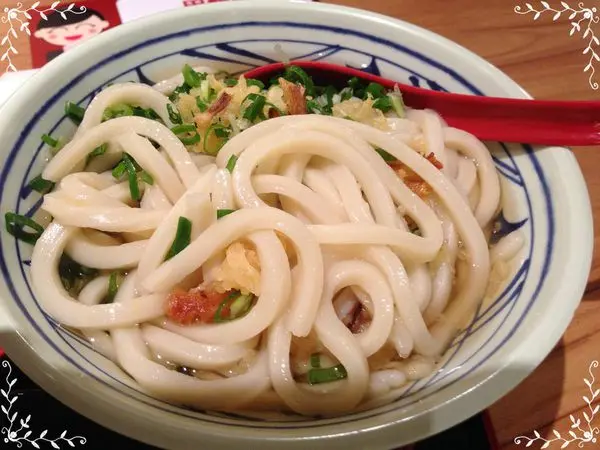 烏龍湯麵(大)$99:完全沒有料,只有烏龍麵、柴魚湯;只好自行加入滿滿的蔥花和天婦羅花,看起來豐盛多了!!!烏龍麵有點半透明的,相當Q彈而且還會裹湯汁,吸一下全都划入口中,清爽有嚼勁,挺不錯的~柴魚湯很清爽加入天婦羅花層次變得很豐富,多了酥脆又綿密的口感,很棒!
