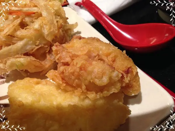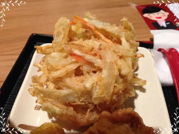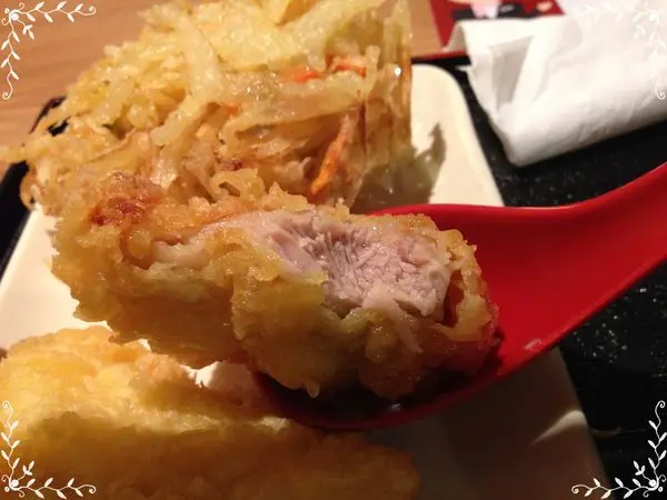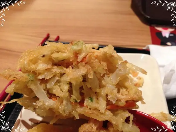 炸什錦$35:看起來有洋蔥、紅蘿蔔、蝦米,有拳頭般的大小,炸得酥脆,吃起來酥酥脆脆很鮮甜,完全不甕沾醬汁就很夠味但是挺油膩的(有點把我嚇到了),放在烏龍湯麵浸泡一下會比較去油,且口感又變得綿綿的,有多種的吃法。