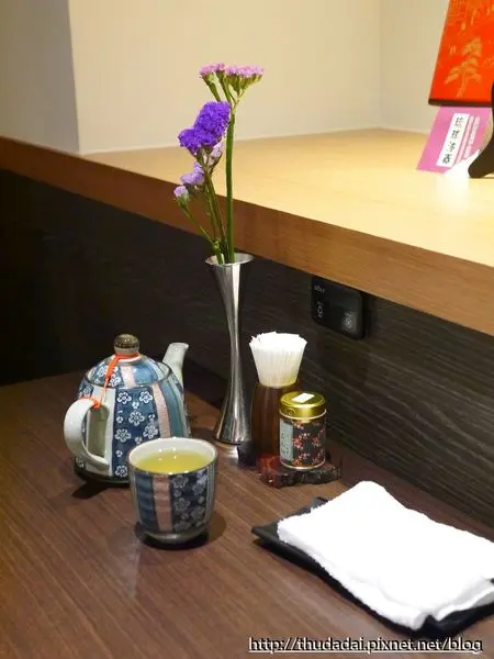 服務則是很典型的日式風格,先奉上熱毛巾和茶,一旁牆上有服務鈴,