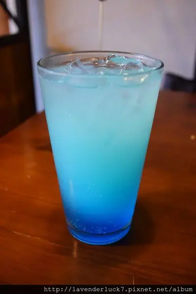 以雪碧為基底,加入檸檬汁.可爾必思.藍柑橘糖漿調製