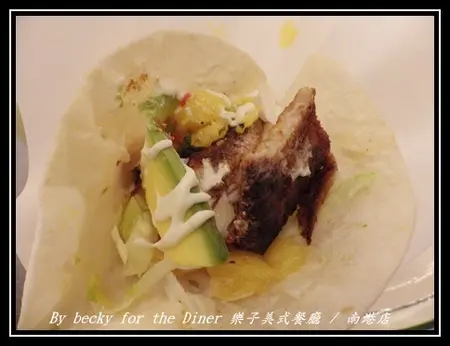 點完餐後,聊了一下天,先送上的是曬黑黑鮮魚塔可(NTD340)。