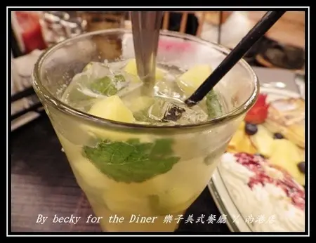 好像是在喝鳯梨汁,她說薄荷葉應該只是裝飾提味用,而把底下糖漿攪
