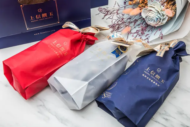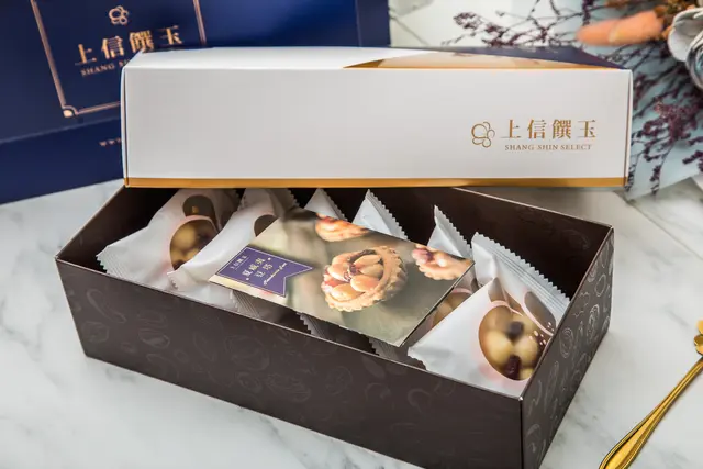 上信饌玉的包裝設計都相當精美,提袋設計也很有質感,上信饌玉超熱賣的金鑽鳳梨酥、夏威夷豆塔是用精緻盒裝,打開包裝就像打開一個禮物似的,內容物都仔細放在間格中,確保在運送過程中不碰撞