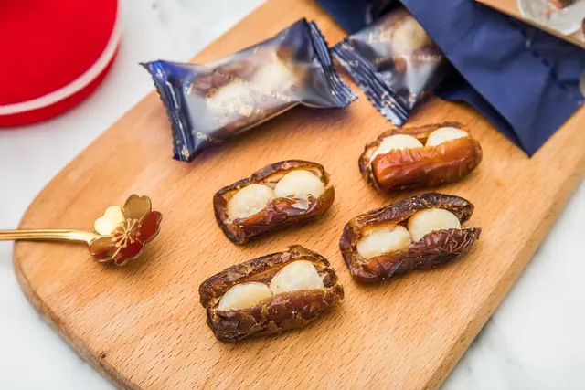 上信饌玉的超級明星商品!市面上應該很少有這樣的產品,一顆顆的夏威夷潛艇都是手工製作,嚴選中東頂級椰棗,皮薄濕潤味甜,而且一顆顆去籽只留下柔嫩香甜的果肉,再塞進最高品質的夏威夷豆,製作相當耗時費工