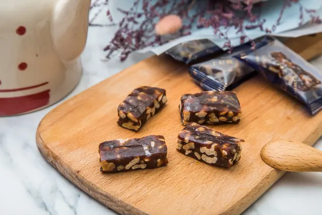 南棗核桃糕是華人過年應景的糖果之一,南棗核桃糕是軟質的糖果,Q軟可口,加上極具養生健康等功效,深受老人與小孩所喜愛