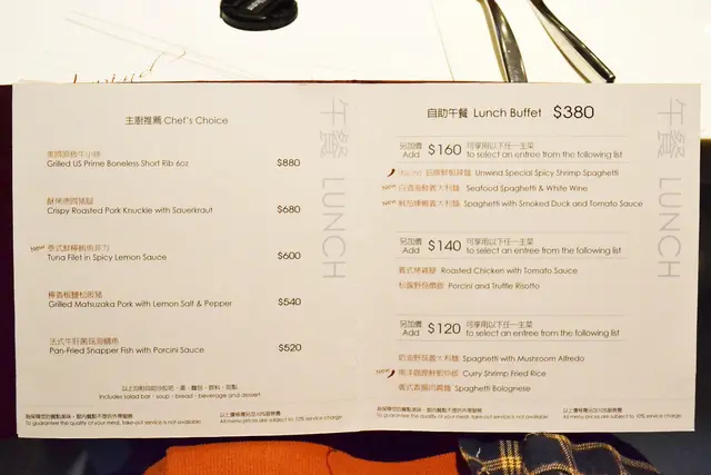 → 午餐buffet價錢 :$380起 +一成服務費