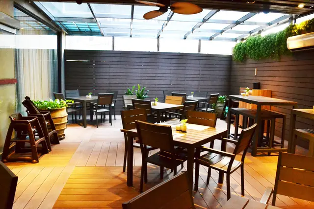 永安棧有分室內外位置,共約有110個位置,室外位置則是冬天才會開放,不是完全開放式的位置區,而是天花板採用透明的板子,冬天坐在這還能享受著暖暖的陽光。如果想要隱密點,永安棧也有提供包廂服務,可容纳6-12的獨立包廂,讓你也能在這享受午間會議、朋友之間的私密空間。