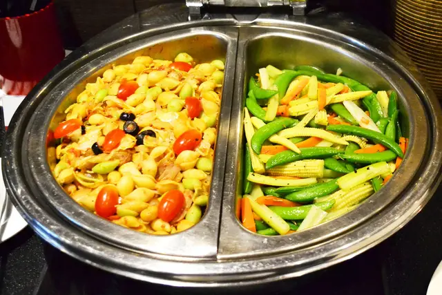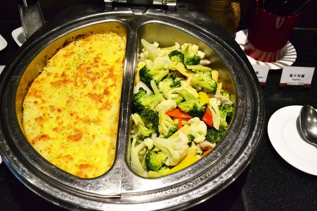 今日永安棧提供5種熱炒類,先來說說義大利麵和炒時蔬,義大利麵是使用貝殼麵,搭配茄汁去拌炒,每一個貝殼都有入味,但又不會太重口味,貝殼麵也不會太過軟爛,表現還不錯!
