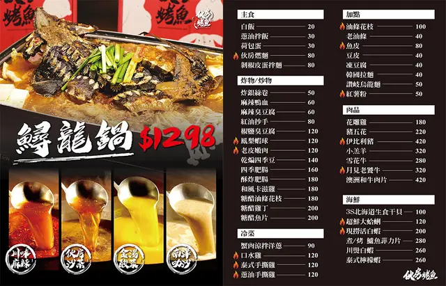 如果很猶豫不知道要吃哪一種口味的烤魚,可以點他們的鴛鴦鍋,就可以吃到兩種口味,人更多,就可以點兩鍋鴛鴦鍋,這樣4種口味都可以吃到!