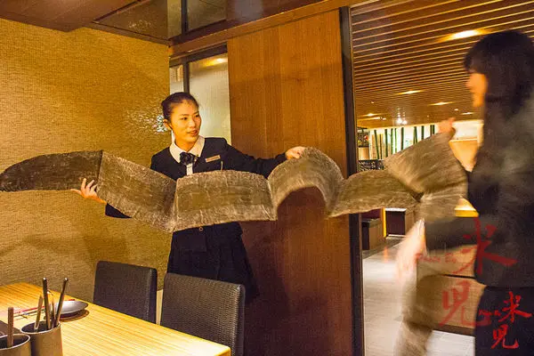 這就是一條長達3公尺的利尻昆布,這是日本著名的頂級昆布之一,優良的品質是因為它生長在低溫而且位處鄂霍茨克海與日本海交界的洋流海域,這種環境很適合昆布生長,如果昆布長度超過2.5公尺,更是極品中的極品,像是澄江使用的這種超過3公尺的利尻昆布,一條價格就要上萬!如果仔細看,昆布上還有一些大小不一的小洞,原來就像是比較甜的水果比較容易吸引鳥兒啄食一樣,比較美味的昆布也容易吸引魚蝦啃食,這些洞正是昆布的美味證明呢!所以用這種昆布來熬的高湯,特別清甜高雅!再搭配台灣高山鍛木香菇之後,帶著一種淡淡的煙燻香氣,難怪澄江鍋物的湯頭喝起來特別溫潤優雅!