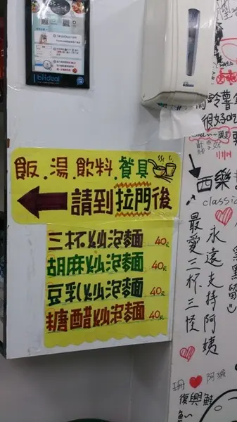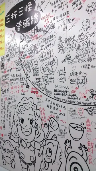 一進門就有三杯三怪的點餐方式,清楚明瞭,連自助區也有大大的標示,就怕客人找不到!牆上有各式餐點的圖片,每一樣看起來都很好吃!