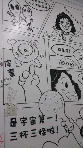 還有一面牆是滿滿的塗鴨,看起來好熱鬧啊!