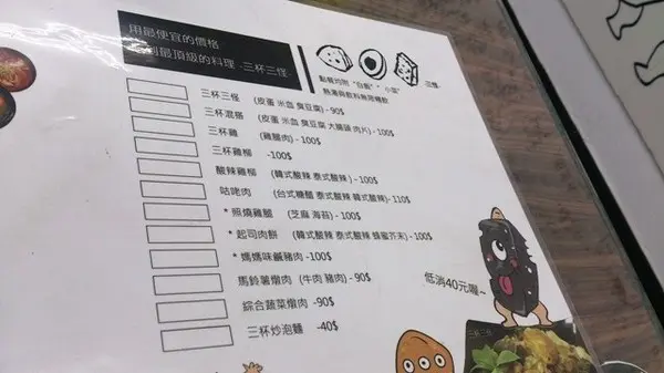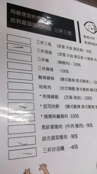 有好多家採訪過的三杯三怪,是走平價路線~店內還有白飯、湯及飲料無限使用!