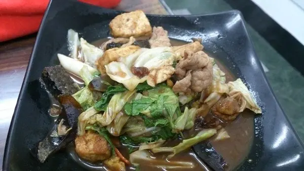 綜合蔬菜燉肉:聽起來不像湯類的這道菜,它確實是一道湯,可以選擇要牛肉或是豬肉。