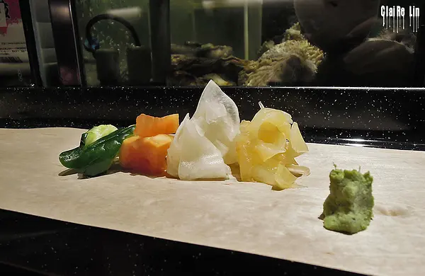 酸甜的漬物除了等待壽司前可以打發時間,更重要的身分是可以消除上一道壽司的味道,具有解膩清口作用。