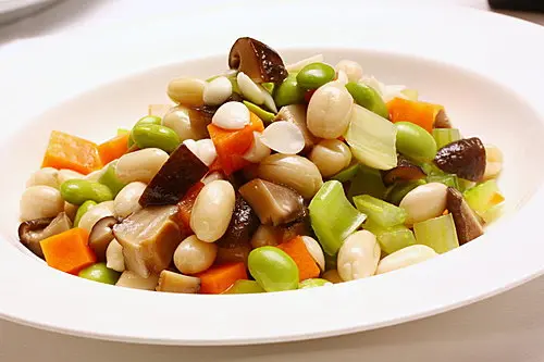 素八寶,這道菜據說是以前北京貴族家裡必備的菜,口味出奇地清淡爽口,可能以前官宦人家菜餚口味重,反而需要這麼爽口的小菜來清清口,裡頭有花生、南杏、西芹、香菇、紅蘿蔔、毛豆........等等,妙的是花生和南杏都是爽脆的口感,十分特別。