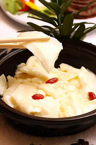看到那細如絲線的豆腐了嗎??刀工真的了得啊~~