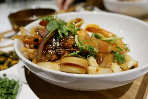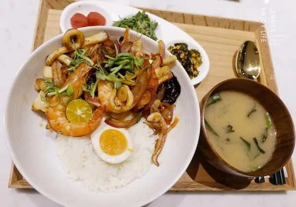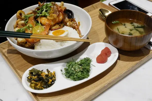 我的海鮮飯是小辣,很下飯,草蝦吃起來脆彈,澎湖小卷也吃得很過癮,塔香辣醬充滿台式迷人的獨特滋味,擠上一些金佶酸酸甜甜又帶些辣勁飯會多扒幾口。