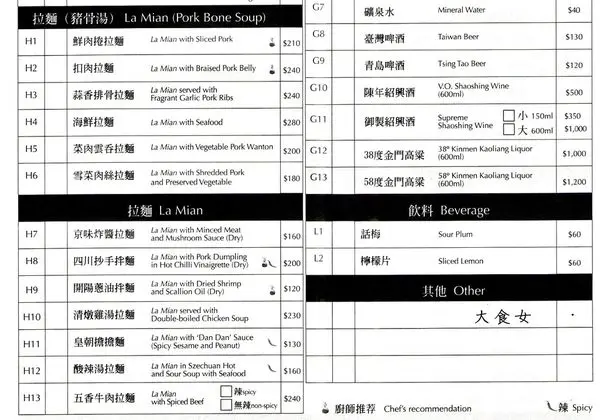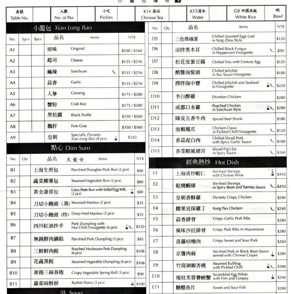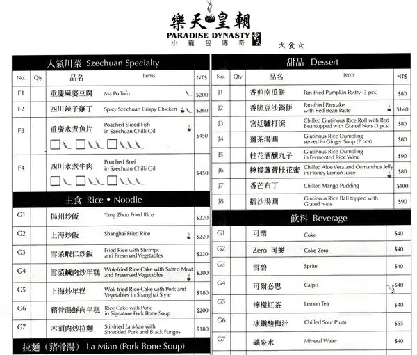大食女當天僅拍攝點餐單,樂天王朝的menu除餐點名稱外、一旁更有彩色插圖,
