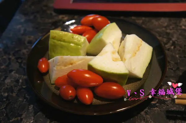 送上水果、招待小菜,嘴裡一邊吃著一邊點餐了。