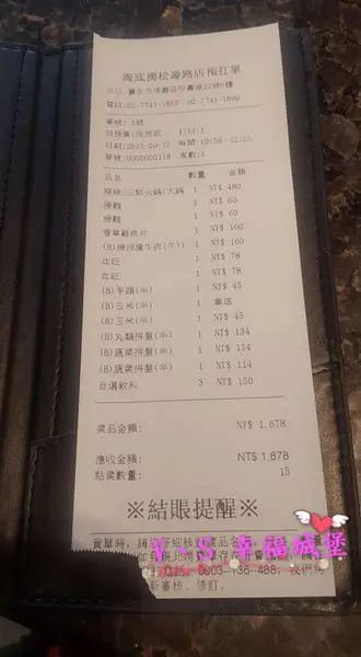 這是我們的帳單,我們 3大1小,吃了 $ 1678