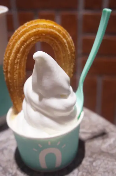 吃到好吃的牛奶冰淇淋和美味吉拿棒