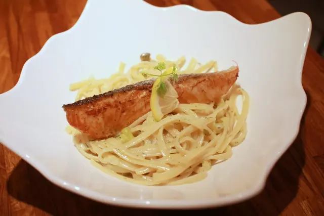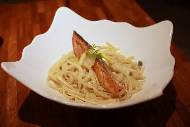 蒔蘿酸豆奶油鮭魚寬扁麵