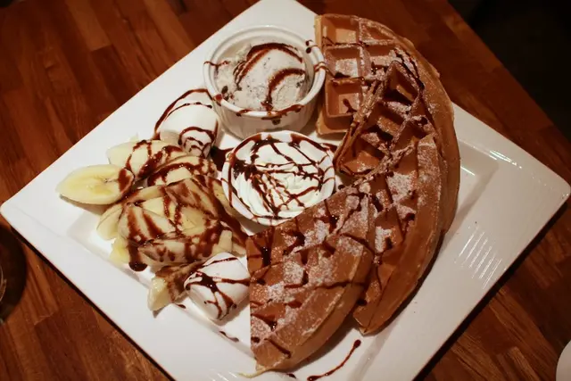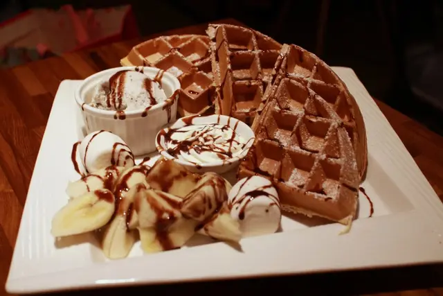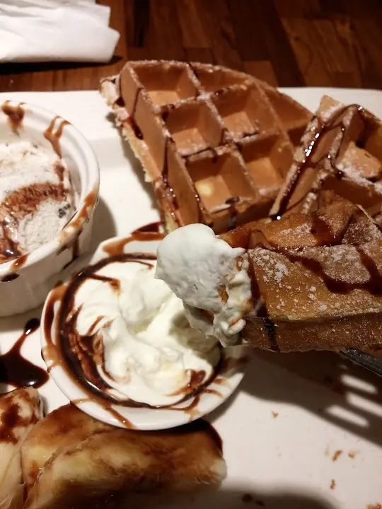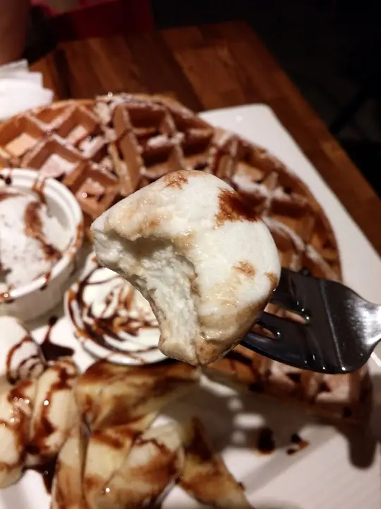 巧克力冰淇淋搭配鬆餅食用別有一番風味!