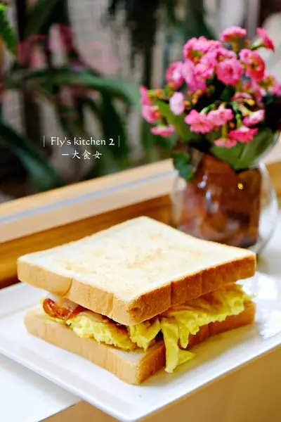 兩片吐司內夾有嫩蛋及培根,其實相較於我點的鮪魚三明治,我覺得這份三明治的CP值實在不高...,