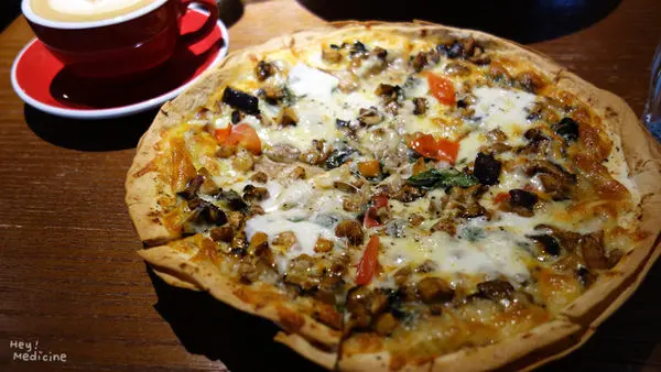 這份披薩是我本日最愛!!起司和蘑菇融合在一起的美味口感,回家微波加熱過後還是很好吃~