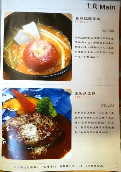 主食的部分都是一個漢堡排主餐搭配套餐的價格