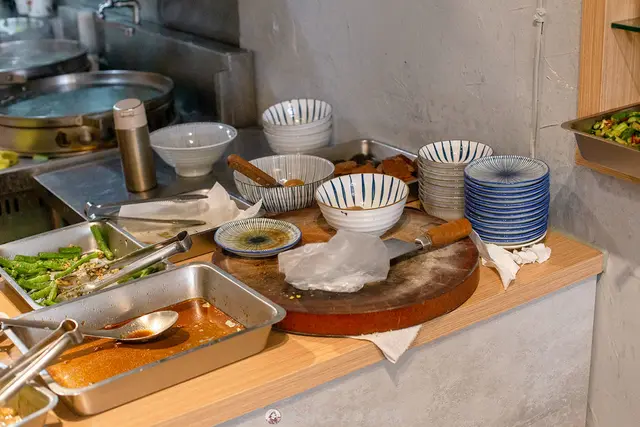 《兄弟麵館》從1992年開業到現在已經超過30年,是大直實踐大學這邊老店,營業時間就做中午跟晚上兩個時段,但周日是休息日,只要用餐十時間都是滿滿的人潮,一點都不誇張,只是《兄弟麵館》現在人手還是不足,原則上餐具跟醬料都放在自助區,要自己取拿,然後用完餐後再自己收餐盤。