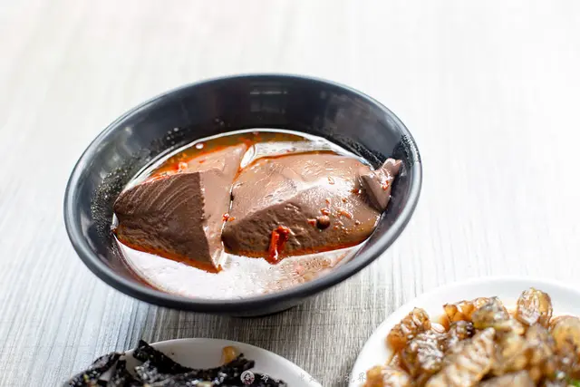 原則上每次來《兄弟麵館》都會來塊鴨血或者是臭豆腐,老闆都是一大鍋在那邊煮,煮到整個很入味很香,晚上來吃有時提早賣完還點不到,重點一份才35元,價格很便宜,煮麻辣鴨血豆腐的湯也能喝,鹹香帶有一點辣度其實也不賴。然後我們又有拿了一份雞捲,原則上就是雞捲,無功無過就可以啦!