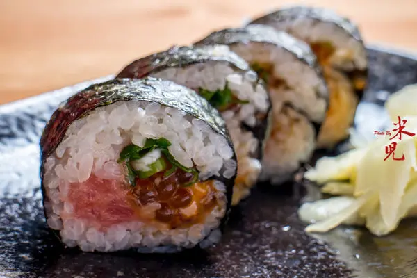 日式滷肉飯,280大洋。壽司卷裡包著愛吃日本料理的人都會喜歡的食材:鮪魚泥、鮭魚卵還有海膽,調味恰到好處的醋飯把食材的鮮甜襯托出來,一上桌就會被搶食一空的逸品。